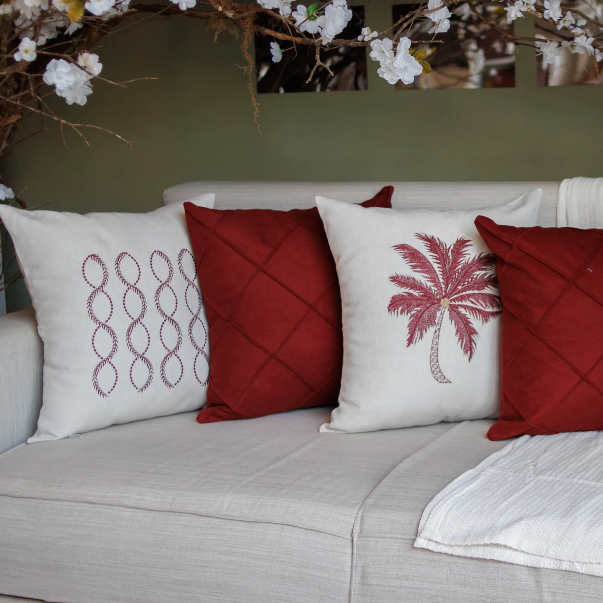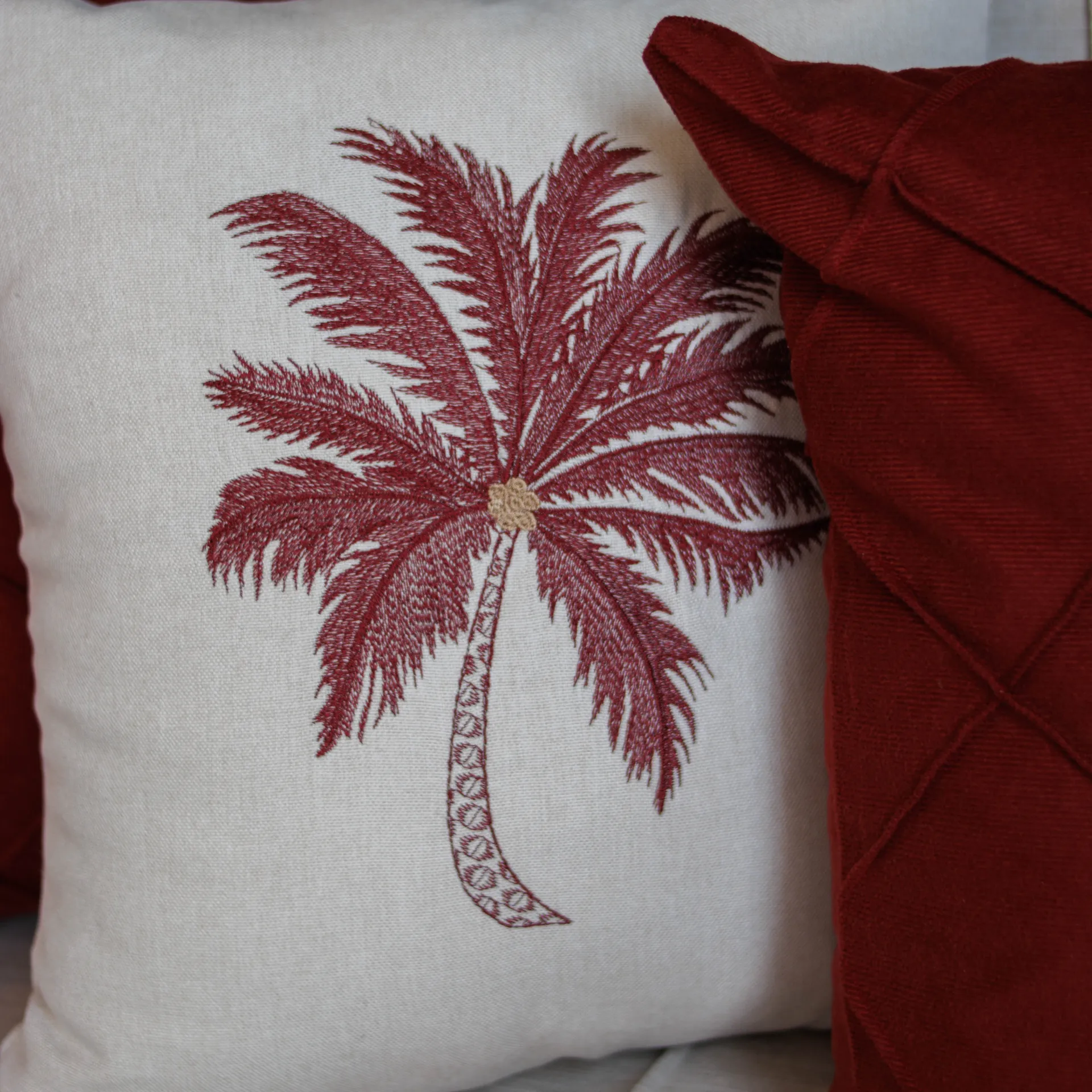 Capa Almofada Bordada Coqueiro Marsala