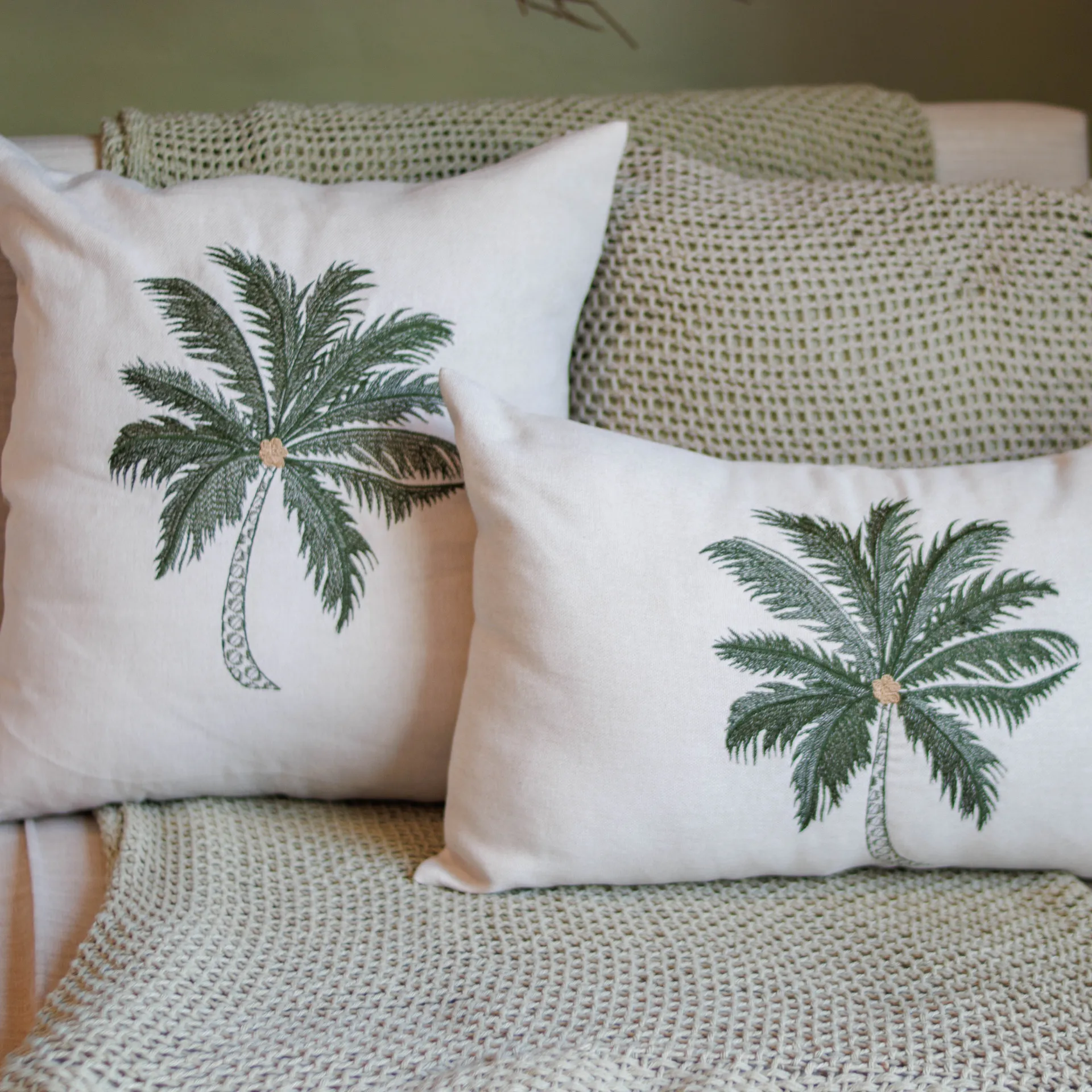 Capa Almofada Bordada Coqueiro Verde