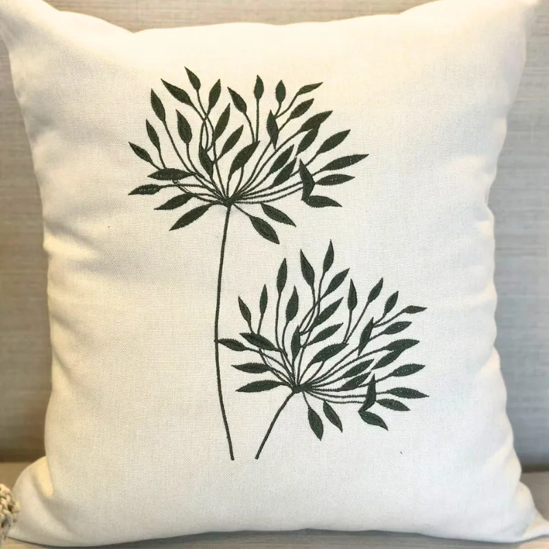 Capa Almofada Bordada Flor Verde