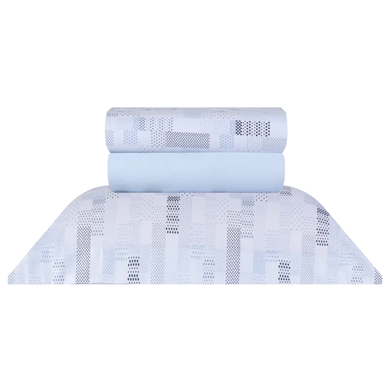 Renove o visual do seu quarto com o Jogo de Cama Sonhare Queen 4 Peças em tom azul estampado, confeccionado em 100% algodão de 180 fios, garantindo toque macio, conforto e excelente respirabilidade durante o sono.